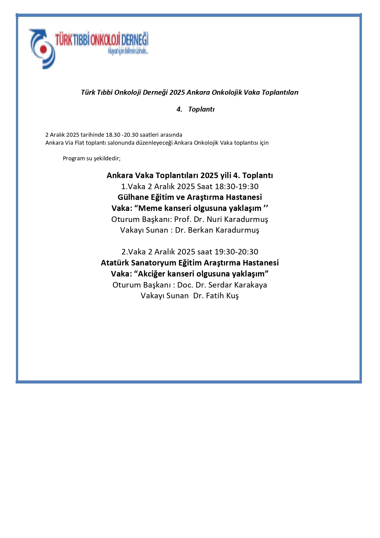 Türk Tıbbi Onkoloji Derneği 2025 Ankara Onkolojik Vaka Toplantıları - 4. Toplantı